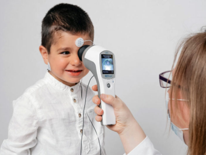 The VEP measures the time that it takes for a visual stimulus to travel from the eye to the occipital cortex. It can give the doctor an idea of whether the nerve pathways are abnormal in any way. For example, in multiple sclerosis, the insulating layer around nerve cells in the brain and spinal cord (known as the myelin sheath) can be affected. This means that it takes a longer time for electrical signals to be conducted from the eyes, resulting in an abnormal VEP. A normal VEP can be fairly sensitive in excluding a lesion of the optic nerve, along its pathways in the anterior part of the brain.